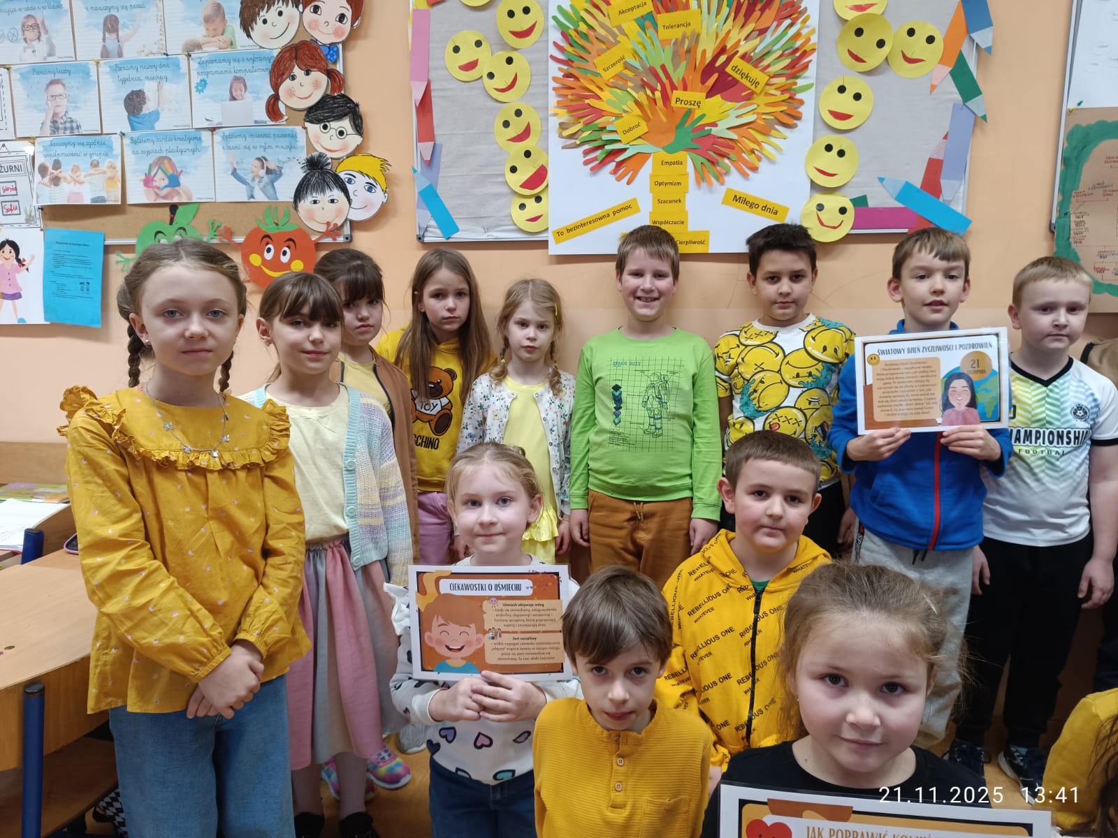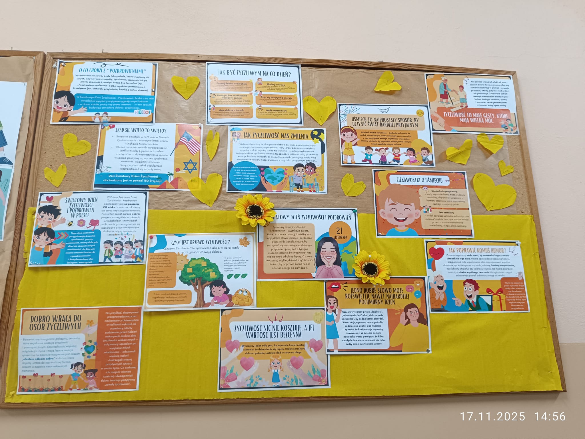 Uczniowie mogli także brać udział w szkolnej „Poczcie Życzliwości”, pisząc ciepłe słowa do kolegów, koleżanek i nauczycieli. W każdej klasie wybrano również osobę uznaną za najbardziej życzliwą – to piękny dowód, że dobro wraca!