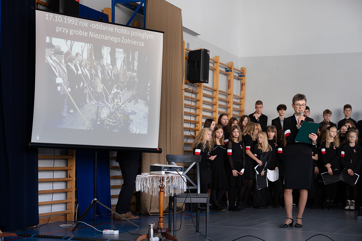 Ten wyjątkowy dzień rozpoczął się uroczystą mszą świętą. Następnie wszyscy zaproszeni Goście, Dyrekcja, Nauczyciele oraz Uczniowie udali się w pochodzie do szkoły, gdzie wysłuchali jej historii, uczestniczyli w przekazaniu sztandaru i obejrzeli przedstawienie pod tytułem „Braterstwo i służba” upamiętniające bohaterów Armii Krajowej.
